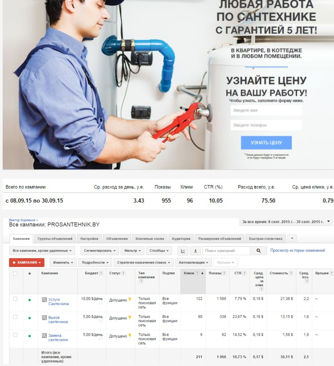 Клиент — компания из Минска, предоставляющая услуги сантехнических работ.